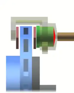 *Bremseskive fra siden (lyseblå med rektangulære huller).