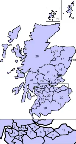 I det skotske parlament er der 129 medlemmer (73 valgt gennem flertalsvalg i enkeltmandskredse og 56 valgt på regionale lister). I Storbritanniens parlament er der 59 skotske parlamentsmedlemmer.