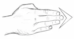 - Spydhåndsslag (spydhåndsslag) – Udføres ved at holde fingrene stramt samlet og støde direkte mod et mål af relativt lille diameter, såsom struben. En variation, hvor en eller to fingre bruges, kan anvendes til at angribe trykpunkter og forårsage midlertidig lammelse eller smerte. I mange karatesystemer kaldes denne teknik nukite (貫手). Spydhåndsslaget kræver stor præcision og træning for at være effektivt uden at skade angriberens egne fingre.[6][7][8]