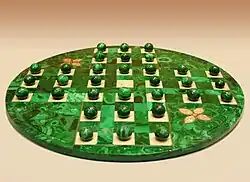 Der findes to almindeligt anvendte spillebrætter: Det engelske med 33 huller i korsform (ikke ulig ludo) og det franske med 37 huller (et ekstra hul i hver vinkel af korset).