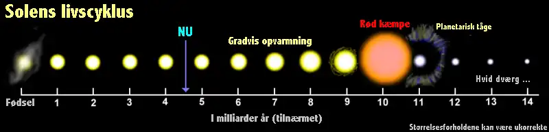 At Solen befinder sig i midten af den såkaldte hovedserie betyder, at den er en stjerne, der endnu ikke har opbrugt det forråd af brint, som anvendes ved fusion. Tidligere i sin historie lyste den med 70 procent af den styrke den har i dag.[16]