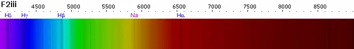 F-stjerner er hvid-gule med overfladetemperatur på 7.000°K (klasse F0)