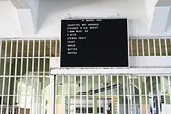 En menu i 1934 bestod af havregryn, mælk, stegt bolognapølse, stegte kartofler, toast, oleomargarine og kaffe til morgenmad, bønnesuppe, roastbeef, sovs, kartoffelmos og kaffe til frokost og svinekød og bønner, majsbrød, kartoffelsalat, abrikoser, brød, oleomargarine og kaffe til aftensmad.[5] En morgenmenu er stadig bevaret fra den 21. marts 1963. Menuen bestod af diverse kornprodukter, røræg, mælk, frugtkompot, brød, ristet brød og smør. Frokosten blev serveret i spisesalen kl. 11:20 efterfulgt af 30 minutters hvile i cellen, før man vendte tilbage og arbejdede indtil kl. 16:15.[4] Middagen blev serveret kl.16:25, og fangerne skulle så trække sig tilbage til deres celler kl. 16:50 for at blive låst inde for natten.[4]