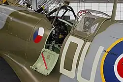 | Spitfire L.F. Mk.IX, MH434 fløjet af Ray Hanna i 2005: Dette fly nedskød en Focke-Wulf Fw 190 i 1943 under tjeneste ved No. 222 Squadron RAF. | |