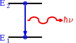 Hvis lyskilden (for eksempel et atom eller en atomkerne) er i en exciteret tilstand med energien og henfalder til en ny tilstand med energien , vil forskellen i energi svare til fotonens energiindhold: