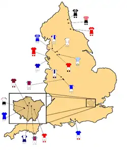 Klubfodbold er organiseret separat efter hvert land i Storbritannien. England har et ligasystem som inkluderer flere tusind hold. I de fire øverste divisioner spilles der professionel fodbold. FA Premier League er den øverste division med de 20 bedste hold i England, og desuden den rigeste i hele verden. De tre andre divisioner er også drevet af FA og inkluderer 72 forskellige hold. England har over 100 professionelle hold, mere end noget andet land i Europa.