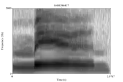 Konsonant- og vokalsegmenter kombineres til at danne stavelser, som så kombineres til at danne ytringer; disse kan typisk adskilles fonetisk som mellemrummet mellem to inhaleringer. Akustisk er disse forskellige segmenter karakteriseret ved forskellige formantstrukturer,[note 3] der er synlige på et spektrogram af den optagede lydbølge.
