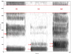 Vokaler er de lyde, der ikke har nogen hørbar friktion forårsaget af indsnævringen eller obstruktionen af nogle dele af den øvre vokaltragt. De varierer i kvalitet i henhold til graden af læbeåbning og tungeplacering i mundhulen.[61] Vokaler kaldes lukket når læberne er relativt lukkede, såsom i udtalelsen af vokalen [i], eller åben når læberne er relativt åbne, såsom med vokalen [a]. Kvaliteten ændres hvis tungen er placeret i den bagerste del af munden, og herigennem opstår vokaler såsom [u]. Kvaliteten ændres også afhængigt af hvorvidt læberne er rundede eller ej, hvorved man kan skelne imellem [i] (urundet fortungevokal) og [y] (rundet fortungevokal).[63]