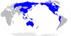 - ↑ Kun det russiske fjernøsten, som delvis ligger på Stillehavsområdet