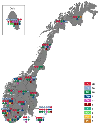 - ↑ "Valgresultat.no". valgresultat.no. Hentet 2021-09-13.