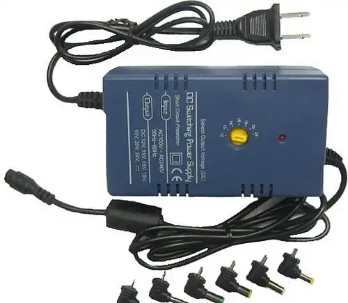 Eksempel på en netdel til bærbare computere som kan omforme fra mellem 100-240VAC til 12, 15, 16, 18, 19, 20, 24 VDC.