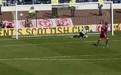 Målmanden skal stå på målstregen inde i målet, og må først flytte sig, når spilleren har skudt til bolden.[2]