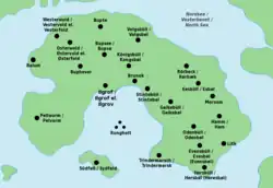Det arealmæssigt formindskede område bestod efter stormfloden stadig af flere sogne og landsbyer såsom Morsum, Gaikebøl eller Stintebøl. Øen var nu omgivet af et stort antal af halliger, især nord for Strand var der opstået en lang række ubeskyttede småøer. Øen selv var fortsat truet af stormfloder. Men der blev også gennemført adskillige landvindings- og inddigningsprojekter. Den fra Strand i 1362 adskilte Trindermarsk blev i 1456 igen forbundet med øen. Det samme gjaldt det 1436 fra øen adskilte Pelvormherred, som blev inddiget i 1551. Med genvinding af Pelvorm-området fik øen også den karakteristiske u- eller hestesko-form, som kendes fra landkort fra dengang. Alle forsøg på at forbinde øen med fastlandet igen eller at geninddige Rungholtbugten mellem de to ø-dele er mislykkedes. Hever-Strømmen åd sig i stedet mere og mere ind i landet fra syd.