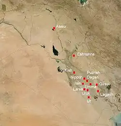 Mod slutningen af det 4. årtusinde f.Kr. var Sumer opdelt i et dusin uafhængige bystater, hvis grænser var kanaler og grænsesten. Hver by lå om et tempel, som var viet til en skytsgud eller gudinde. Byerne blev regeret af en præst (ensi) eller en konge (lugal), som var nært knyttet til byens religiøse kult.