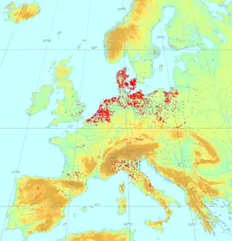 Omtrent en fjerdedel af den middelalderlige gotiske murstensarkitektur står i Holland, i Flandern og i Fransk Flandern. Nogle af disse bygninger er opført i en kombination af mursten og sten. Tårnene på Mariekirken i Lübeck, den vigtigste teglstensgotiske kirke i Østersøregionen, har hjørner af granitkvadre. Mange landsbykirker i Nordtyskland og Polen er i teglstensgotisk stil, selvom deres vægge hovedsageligt består af kampesten.