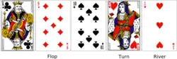 - Hver spiller får 2 kort på hånden. Første betting-round. Herefter vendes fælleskort 1, 2 og 3 (the flop).