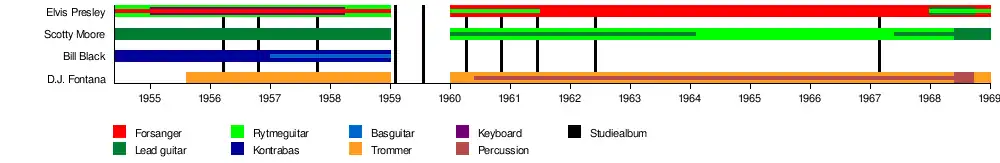 - D.J. Fontana – trommer, percussion, baggrundsvokal (1955–1968; død 2018)
