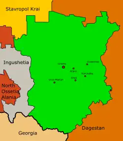| Republikken Tjetjenien russisk: Чеченская Республика tjetjensk: Нохчийн Республика | |||