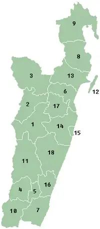 Provinsen består af tre regioner (faritra) som i er inddelt i alt i 18 distrikter (fivondronana):