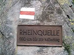 På et skilt ved Rhinens udspring står der fejlagtigt, at Rhinen har en længde på 1.320 km og ikke 1.230 km. (Nu er længden 1.232 km.) Formodentlig en skrivefejl, da skiltet blev lavet. Det betød imidlertid, at der i årtier stod en forkert længde (1.320 km) på Rhinen i leksika, lærebøger og officielle opslagsbøger[4][5]