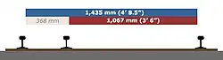 Strækningen Stubberup-Faxe Ladeplads, i dag en del af Østbanen, havde flerskinnespor med tre skinner; de to yderste udgjorde et normalspor og en af de yderste og en indre skinne udgjorde et smalspor.
