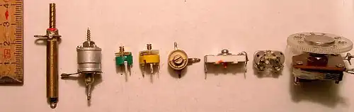 Trimmere findes i mange forskellige størrelser og præcisioner; for eksempel, eksisterer der multi-turn trimmepotentiometre, hvor man kan dreje justeringsskruen mange mange (typisk 10) så dens midterben kan justeres med stor præcision.