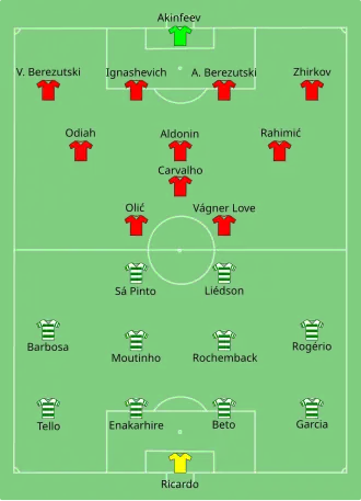 Efter 29 minutter faldt kampens første mål, da Rogério bragte Sporting foran 1-0. Den stilling holdt til det 56. minut, hvor Aleksei Berezutski udlignede for russerne. Små ti minutter minutter senere udbyggede Jurij Zjirkov føringen til 2-1, inden Vágner Love scorede til 3-1 i det 75. minut, som også blev kampens resultat.