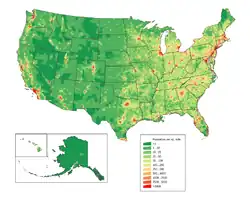 Miljøproblemer har været på den nationale dagsorden siden 1970. Miljømæssige kontroverser omfatter debatter om olie og atomkraft, håndtering af luft- og vandforurening, de økonomiske omkostninger ved at beskytte vildt plante- og dyreliv, skovning og skovrydning[88][89] og internationale reaktioner på den globale opvarmning.[90][91] Mange føderale og statslige organer er involveret. Den mest fremtrædende er Environmental Protection Agency (EPA), skabt af et præsidentielt dekret i 1970.[92] Ideen om vild natur har formet forvaltningen af offentligt land siden 1964, hvor Wilderness Act blev vedtaget.[93] Endangered Species Act fra 1973 har til formål at beskytte truede arter og deres habitater, som overvåges af United States Fish and Wildlife Service.[94]