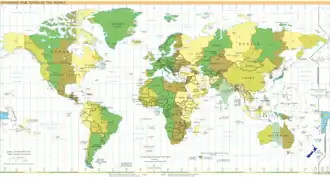 - New Zealand (med undtagelse af Chatham Øerne som bruger UTC+12:45). New Zealand bruger UTC+12 som standardtid.