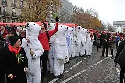 Jens Galschiøt lavede en happening i Paris under COP21, hvor han og hans medarbejdere var iført isbjørnekostumer.[6] Happeningen var et forsøg på at skabe øget fokus på udledningen af CO2. Paris var i undtagelsestilstand, da happeningen foregik. Det var derfor ikke tilladt for Jens Galschiøt og hans medarbejdere at bære masker. Isbjørnehæren deltog i mange demonstrationer mod klimaforandringer.[7]