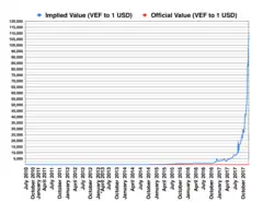 Med de nye begrænsninger på udenlandsk valuta opstod et sort marked for valuta, da mange handelsdrivende i landet var afhængige af varer, der krævede betaling i udenlandsk valuta.[62] I takt med at Venezuela printede flere penge til deres sociale programmer, fortsatte bolívaren med devaluere, da regering havde størstedelen af det mere stabile valutaer.[62] Da handelsdrivende kun kunne få lov at modtage en vis mængde udenlandsk valuta, blev de nødt til at vende sig mod det sorte marked, hvilket medførte at priserne for almindelige forbrugere steg.[63] De høje priser på det sorte marked gjorde det svært for forretninger at indkøbe de nødvendige varer og tjene på dem, fordi regeringen ofte tvang dem til prisnedsættelser, såsom den venezuelanske afdeling af McDonald's, der solgte en Big Macmenu for $10,90 i januar 2014, selvom de kun kunne tjene $1 på det sorte marked for de importerede varer.[64] Da forretninger tjente så lidt på deres varer, forstærkede det effekten af varemangel idet de ikke kunne tjene nok til at importere eller producere ny vare, som landet var afhængig af.[65][66]
