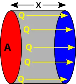 Hvis temperaturen på hver sin side af en skillevæg er forskellig, vil der foregå en varmeledning eller varmestrøm gennem adskillelsen fra den varme til kolde side.