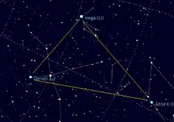 Vega danner sammen med stjernerne Deneb i Svanen og Altair i Ørnen et meget let genkendeligt stjerne-mønster kaldet Sommertrekanten, ikke at forveksle med et stjernebillede.