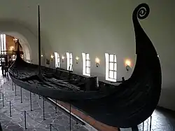 Der er gjort adskillige arkæologiske fund af vikingeskibe i mange forskellige størrelser, hvilket har givet viden om de håndværksmæssige teknikker, der er anvendt til fremstilling af dem. Der er mange typer vikingeskibe, som blev bygget til forskellig brug; den bedst kendte type er sandsynligvis langskibet.[171] Langskibe blev anvendt til krig og opdagelsesrejser. De var designet så de var hurtige og manøvredygtige. Langskibene havde et langt, smalt skrog med en lav køl, og de var udstyret med åre til at supplere sejlet, hvilket gjorde det muligt at sejle uafhængig af vinden. Langskibe var meget anvendt af ledingsflåden, der var den skandinaviske forsvarsflåde. Langskibene gjorde det muligt for nordboerne at drage i viking, hvilket kan forklare, hvorfor netop denne type skib stort set at blevet synonym med vikingerne.[172][173]