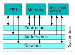 Data og instruktioner overføres via den samme bus (der findes en databus, en adressebus og en kontrolbus med styresignaler), hvilket let giver anledning til ventetid (”von Neumann-flaskehalsen”), når bussen er optaget. Dette er søgt løst i Harvard-arkitekturen, hvor data overføres over én bus, mens instruktioner overføres over en særskilt bus. Den første maskine med en von Neumann-arkitektur var Manchester Small-Scale Experimental Machine, også kendt som Manchester Baby, der kørte første gang i 1948.