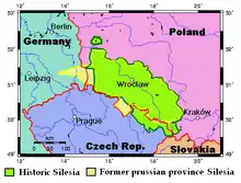Bohemian Silesia (green) with northern Świebodzin exclave