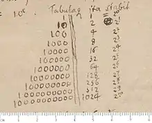 The number 1024 in a treatise on binary numbers by Leibniz (1697)