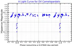 A Hipparcos light curve for DV Camelopardalis, adapted from Bakiş et al. (2011)[1]