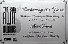 The 25th Awit Awards were held on November 27, 2012, at the Glorietta located in Ayala Center, Makati. They gave excellences to the best of Filipino music for the year 2011.[1][2][3]