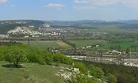 During the spring Colonel Skutelnik was put in command of Defense Sector II, which was manned by his own division in the Chernaya River valley plus the 8th and 7th Naval Infantry Brigades.[7] The latter unit held the same ground where Russian artillery had repulsed the Charge of the Light Brigade in 1854.[8] The sector was 17.5 km long and ran from that point generally northward along the tops of the heights and reverse slopes of Mount Gasfort, Telegraph Hill and the heights above the Chorguns to Shuli. The lines of the 386th consisted mostly of trenches and a few pre-cast bunkers. The division also held two strongpoints equipped with bunkers and field fortifications at or near the tops of Mount Kara-Koba and Sugar Head.[9]