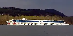 The A-Rosa Mia (registered ship name: A'Rosa Mia) is a German river cruise ship, cruising on the Danube river. The ship was built by Neptun Werft GmbH at their shipyard in Warnemünde, Germany, and entered service in April 2003. Her sister ships are A-Rosa Bella, A-Rosa Donna and A-Rosa Riva. Her home port is currently Rostock.