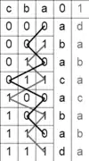 3-bit Gray code visualized as a traversal of vertices of a cube (0,1,3,2,6,7,5,4):[1]ABACABA