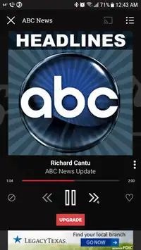 ABC News Radio being streamed on Slacker Radio (now LiveXLive) app.