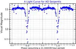 A visual band light curve for AO Serpentis, plotted from ASAS-SN data[1]