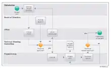 Throughout the project term, the project members work on the standard through regular meetings, phone conferences or individual off-line work. The project leader regularly reports the progress of the group's work to the TSC.