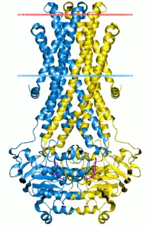 27. 1 2 3 Dawson RJ, Locher KP (Sep 2006). "Structure of a bacterial multidrug ABC transporter". Nature. 443 (7108): 180–5. Bibcode:2006Natur.443..180D. doi:10.1038/nature05155. PMID 16943773. S2CID 27132450.