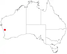 The species is confined to a small area between Morawa and Three Springs where it is found on rocky hill slopes where growing in clay-loam or sandy-loam soils.[1] It is often part of the understorey in Eucalyptus woodland communities or in dense Casuarina scrub.[2]