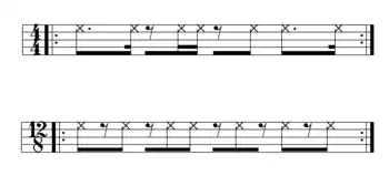 The most commonly used key pattern in sub-Saharan Africa is the seven-stroke figure known in ethnomusicology as the standard pattern.[20][21][22] The standard pattern, composed of two cross-rhythmic fragments, is found both in simple (4