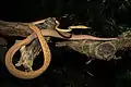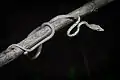 The Asian vine snake feeds on small reptiles and amphibians, particularly lizards and tree frogs.
