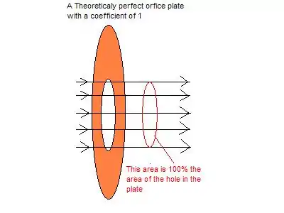 An orifice with a flow coefficient of 0.59 would flow the same amount of fluid as a perfect orifice with 59% of its area or 59% of the flow of a perfect orifice with the same area (orifice plates of the type shown would have a coefficient of between 0.58 and 0.62 depending on the precise details of construction and the surrounding installation).[1]